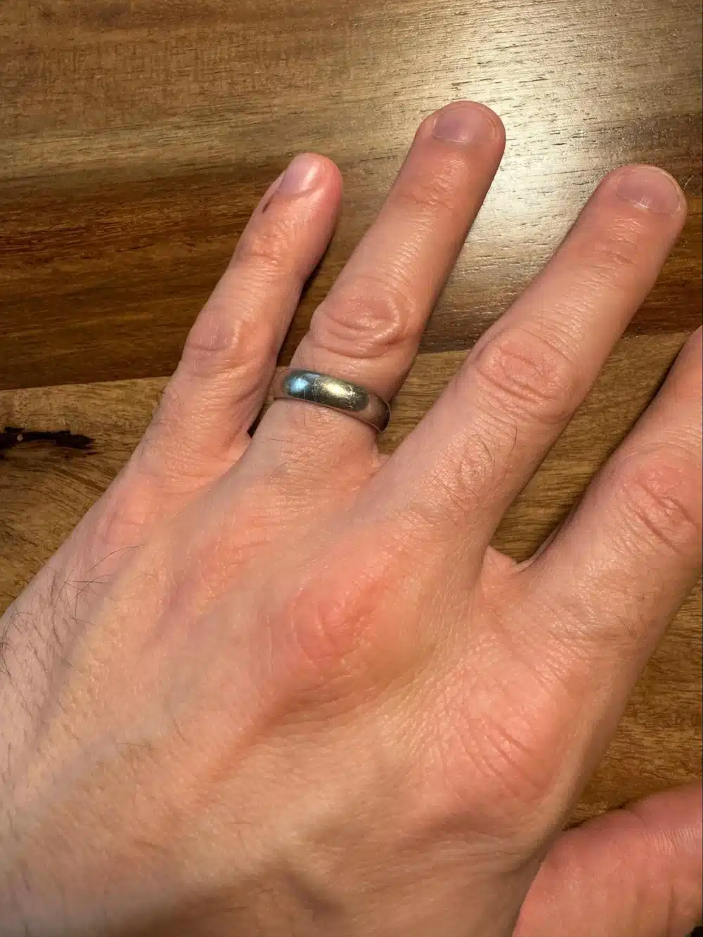 When is a ring too tight? Of course, if the ends of your finger are turning purple, it’s definitely too tight! More realistically, a ring is a bit too snug if you frequently need dish soap or some other lubricant to get it off.