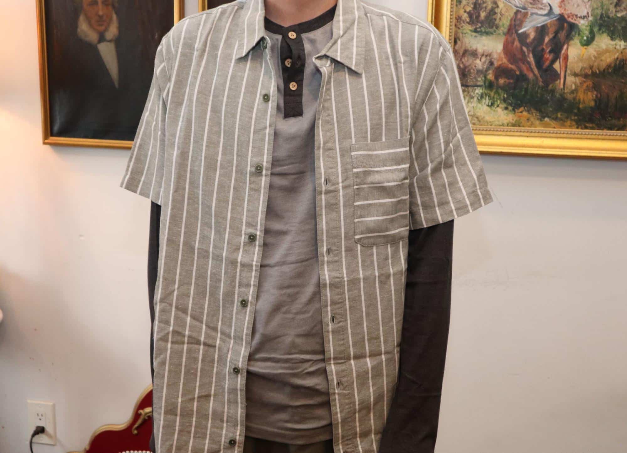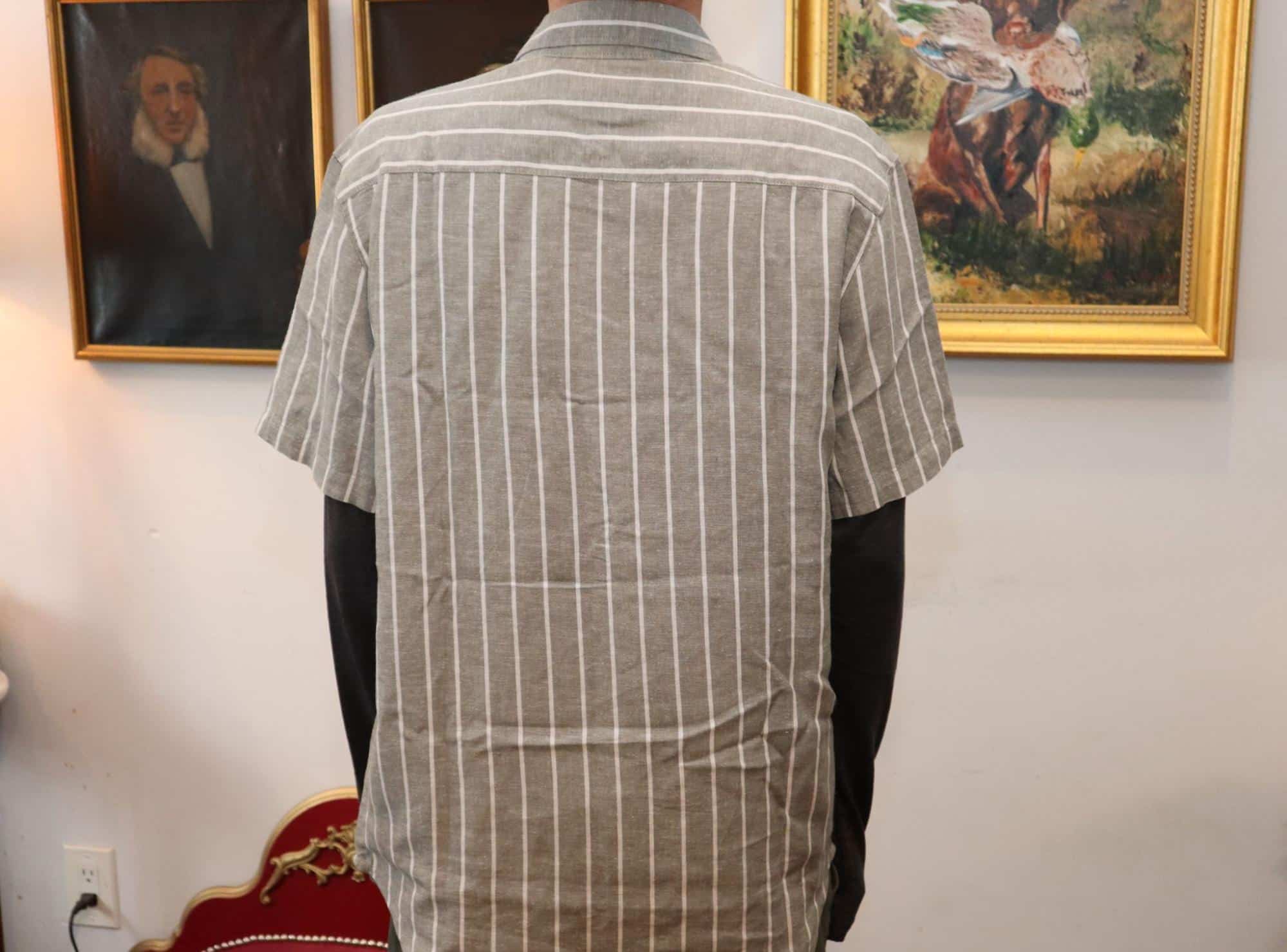 I say yes. For one thing, it fit me exactly as it fits the model on the website, so there’s no false advertising here. The sleeves hit right above the shoulders, which I know isn’t everyone’s style for a button-up collared shirt.
