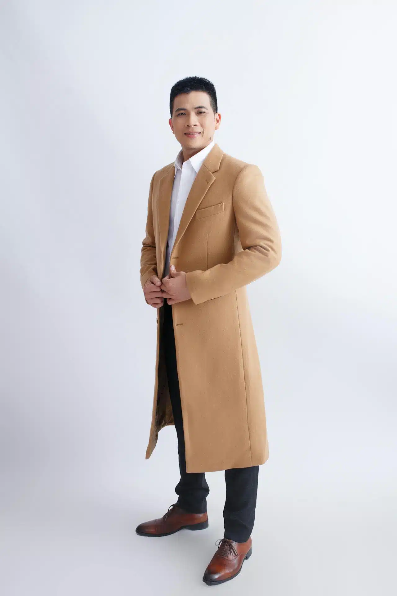 Length is key to creating a streamlined appearance while wearing an overcoat. An overcoat that goes well past the knees can make you appear shorter. On the other hand, one that’s too short lacks warmth and won’t look as good. Try aiming for around mid-thigh.